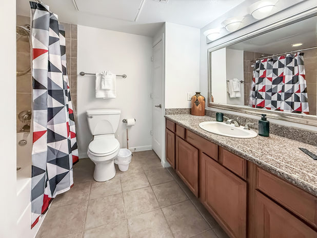Welcome to our one bedroom, one bathroom apartment at Residences at Gramercy! All of our one bedroom apartments at Residences at Gramercy feature two queen size beds in the bedroom, a spacious living room with a comfy sofa and power-lift recliner. All apartments feature a built in study and private patio. The ground floor is the parking area and there is elevator access to each floor and amenity so no stairs are required to access your apartment.